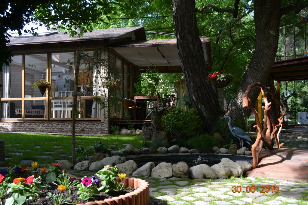 Бунгало с парящей террасой, видом на пруд с рыбами и черепахами, в окружении вековых деревьев, русской баней на дровах (баня включена в стоимость проживания от 2 х суток, 2 часа бани в подарок, одна топка)
