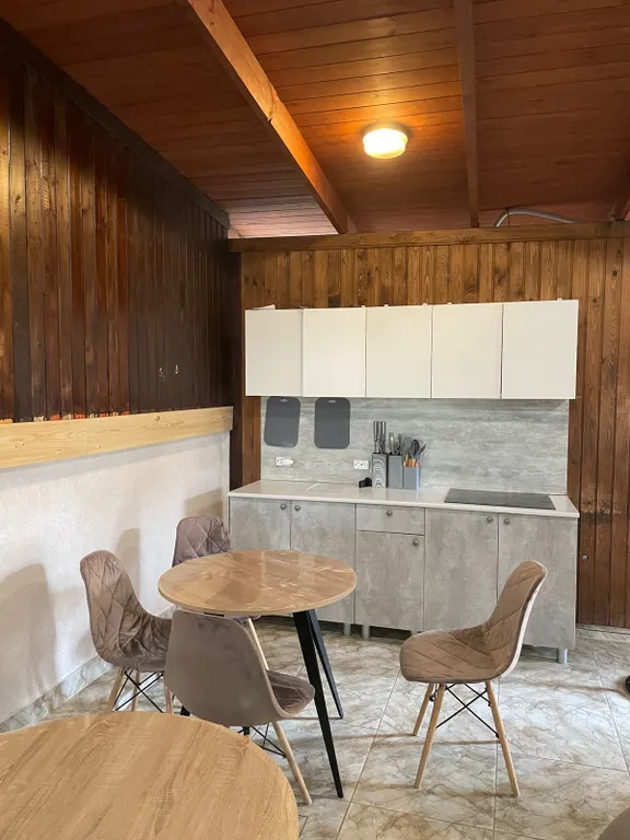 На территории гостевого дома имеется просторная общая кухня со всем необходимым для приема и приготовления пищи.