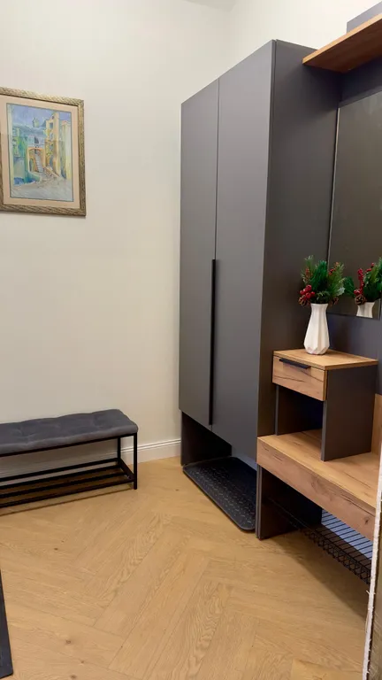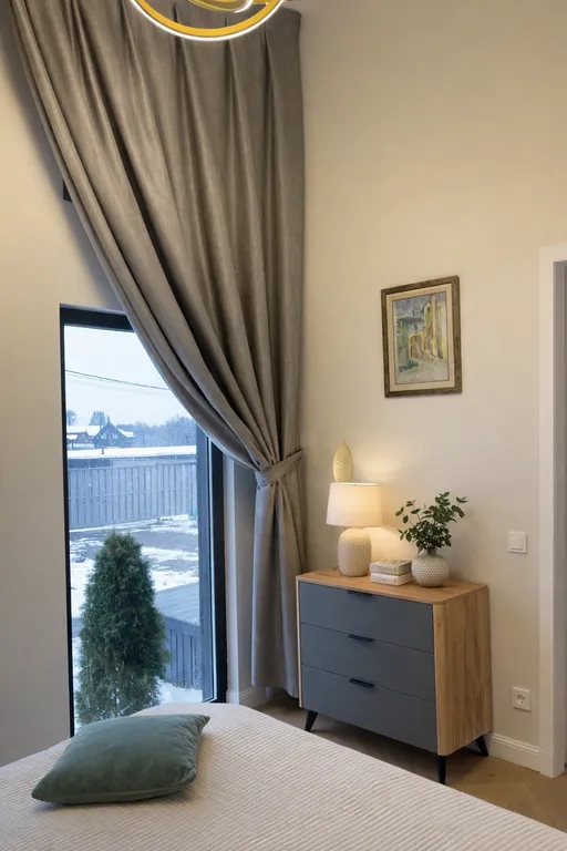 Две уютные спальни с мягким и спокойным дизайном, удобными двуспальными кроватями и ортопедическими матрацами для крепкого и глубокого сна сделают ваш отдых незабываемым и приятным. По заблаговременному запросу в одну из спален можно установить детский экологически чистый деревянный манеж.