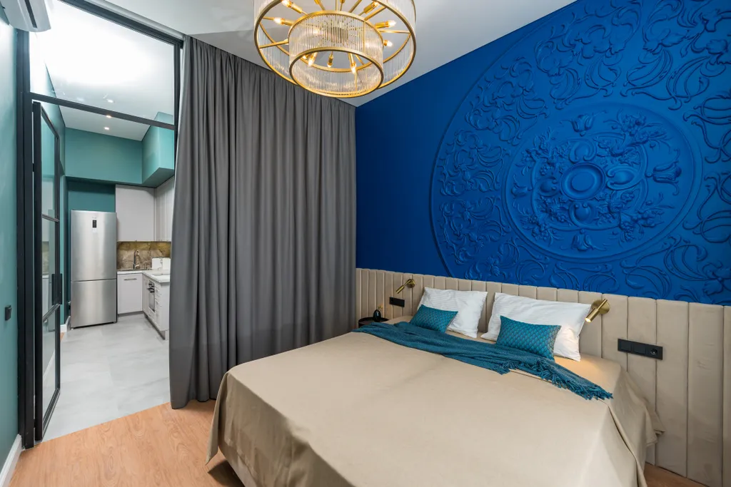 - Спальные места: комфортная двуспальная кровать и просторный раскладной диван, который легко разместит двух гостей.