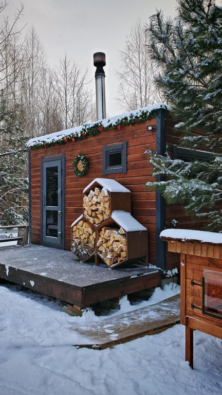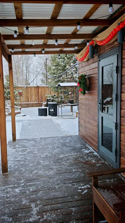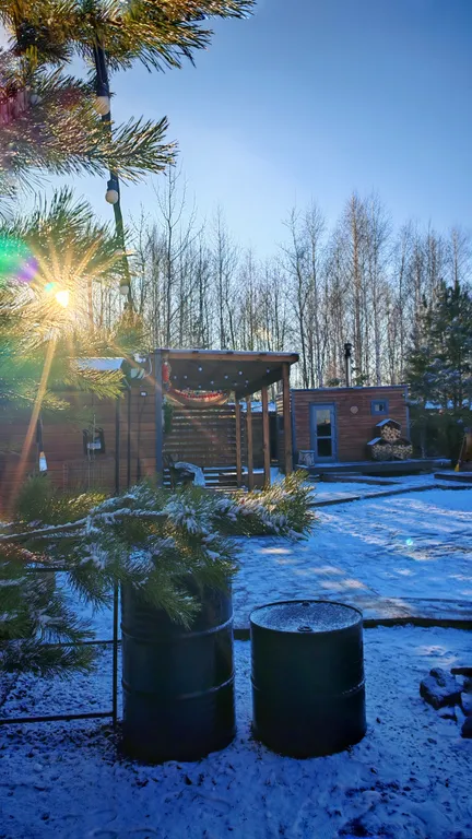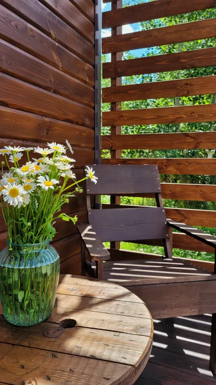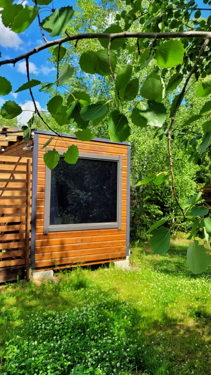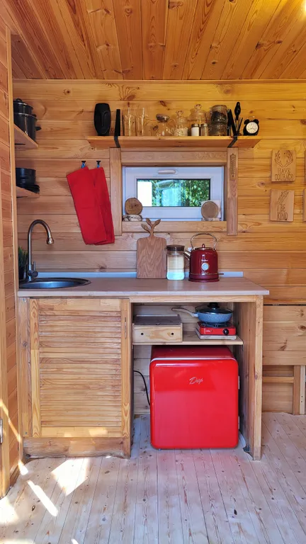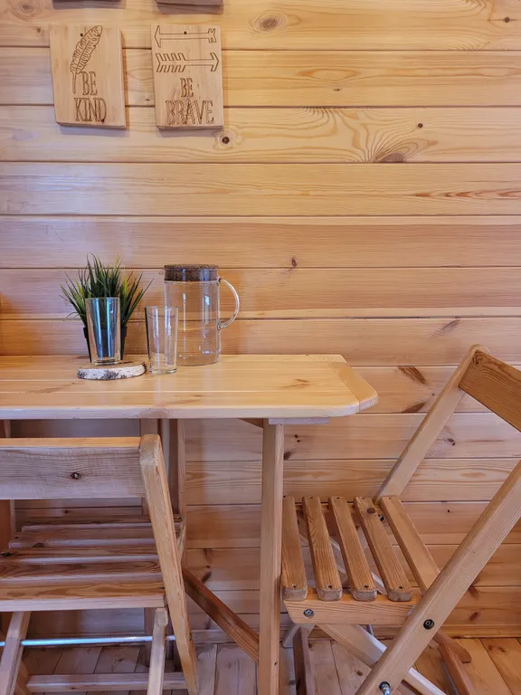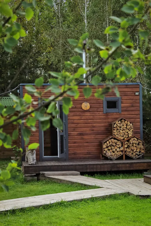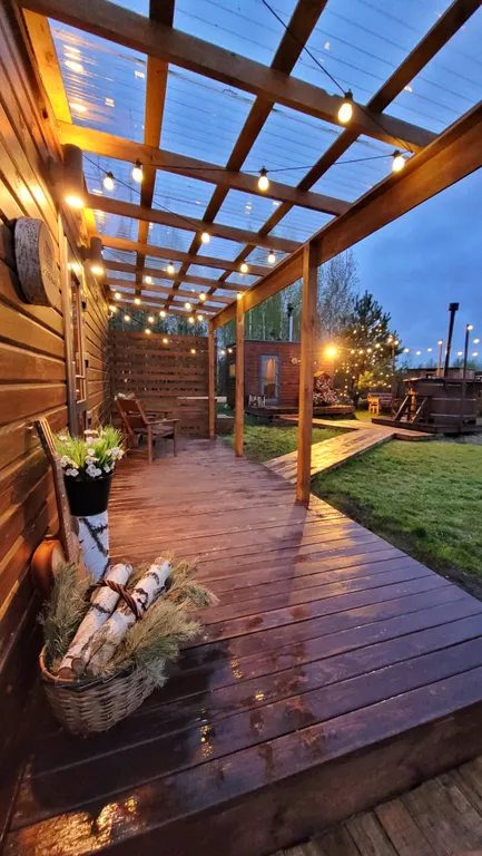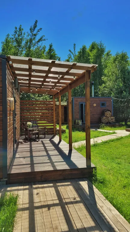 Дом рассчитан на пребывание двух взрослых и одного ребенка при необходимости. Для комфортного проживания оборудованы кухня, спальня и ванная комната. Кстати, о террасе для вечерних посиделось в Wood Place тоже позаботились.