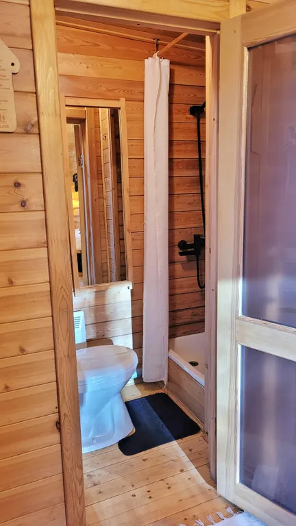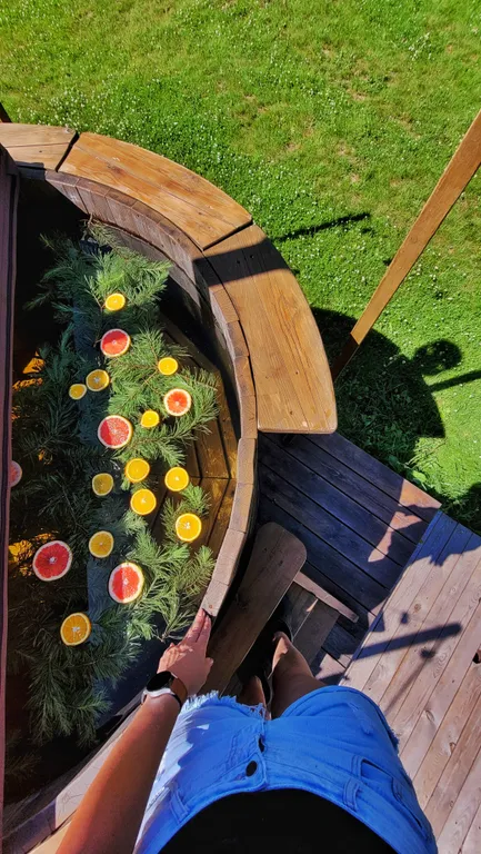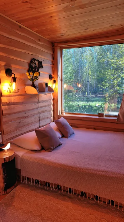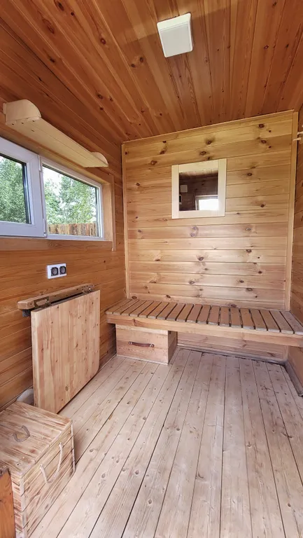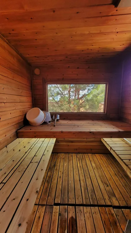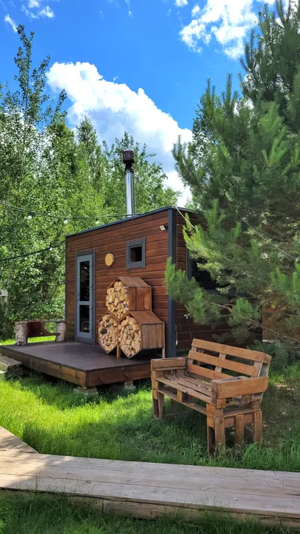 Еще одна точка притяжения отдыхающих - местная банька. Из парильни открывается вид на лес, что является приятным бонусом.
