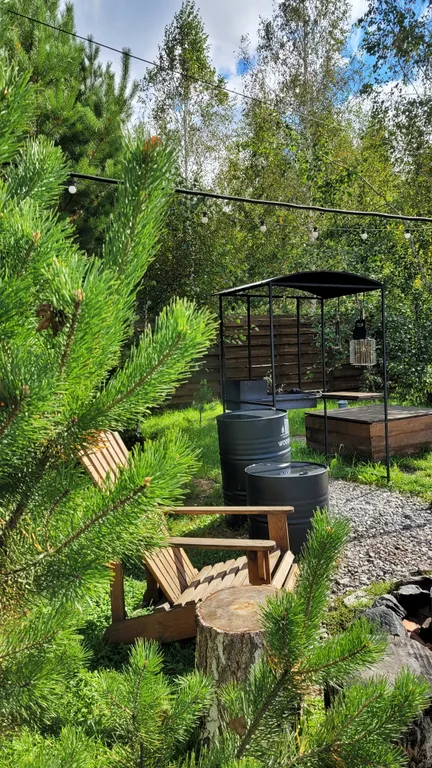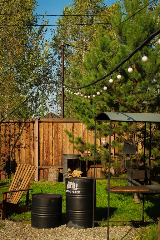 На территории предусмотрена барбекю-зона с мангалом и пространством для отдыха у костра. Решетка для гриля, шампуры и дрова всегда есть на месте.