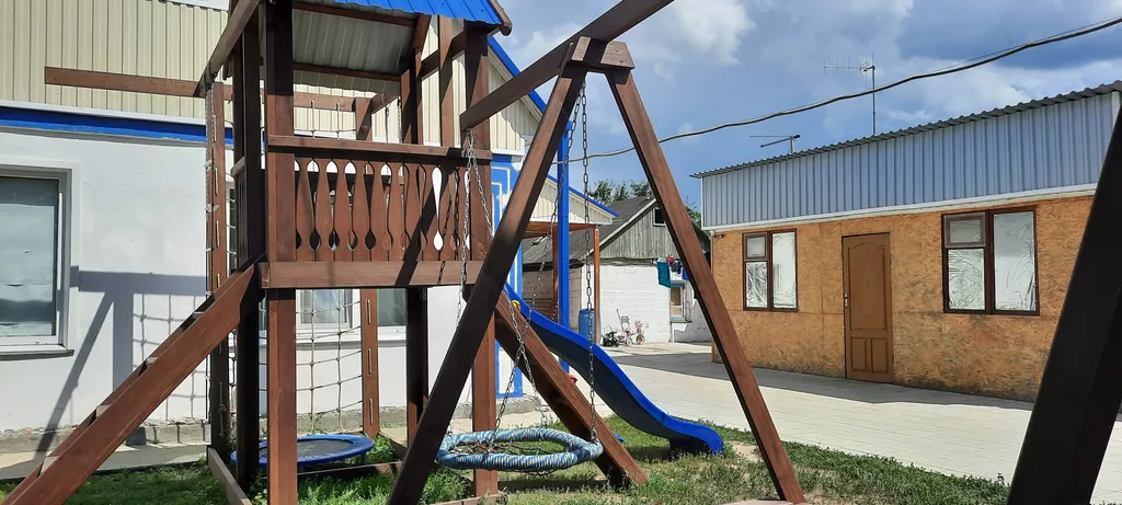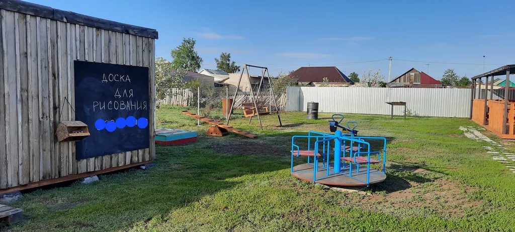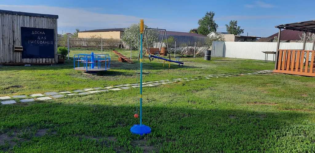 Для детей общие 2 песочницы и 2 детские игровые площадки, 2 качели