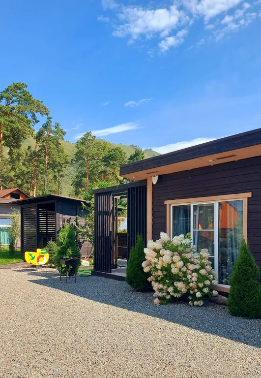 Наши домики находятся в тихом месте с. Манжерок. Напротив нас большая набережная, лес, очень красивое место для прогулки и отдыха на берегу реки. Также в шаговой доступности много кафе и супермаркетов. В 4 км от нас находится ГЛК Манжерок.