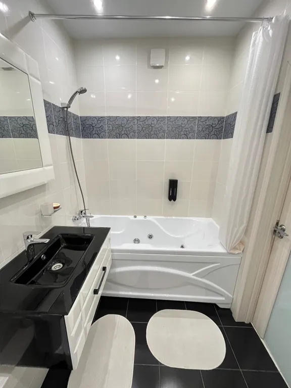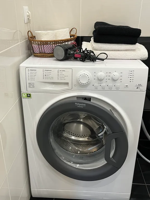 В ванной комнате имеется: фен, утюг, гладильная доска, сушилка для одежды, а также стиральный порошок, гель для душа, мыло для рук.