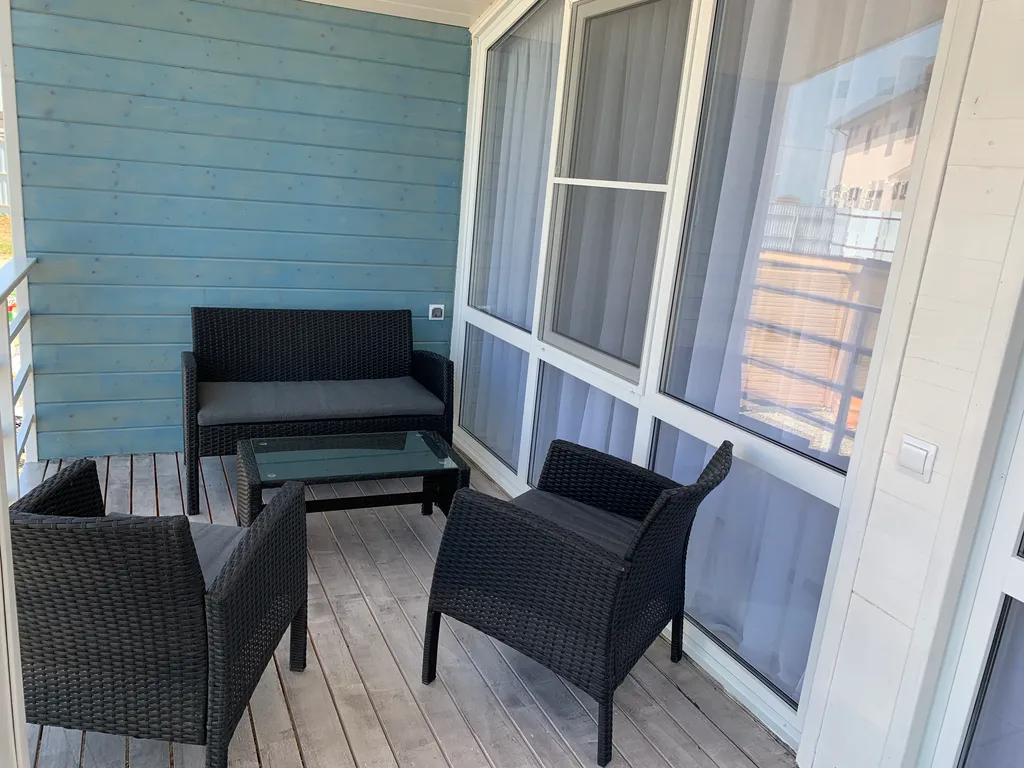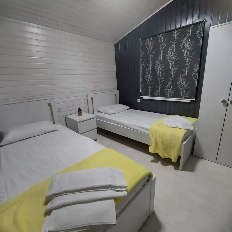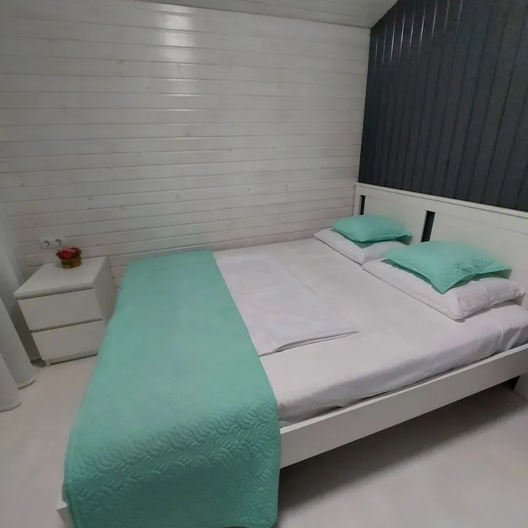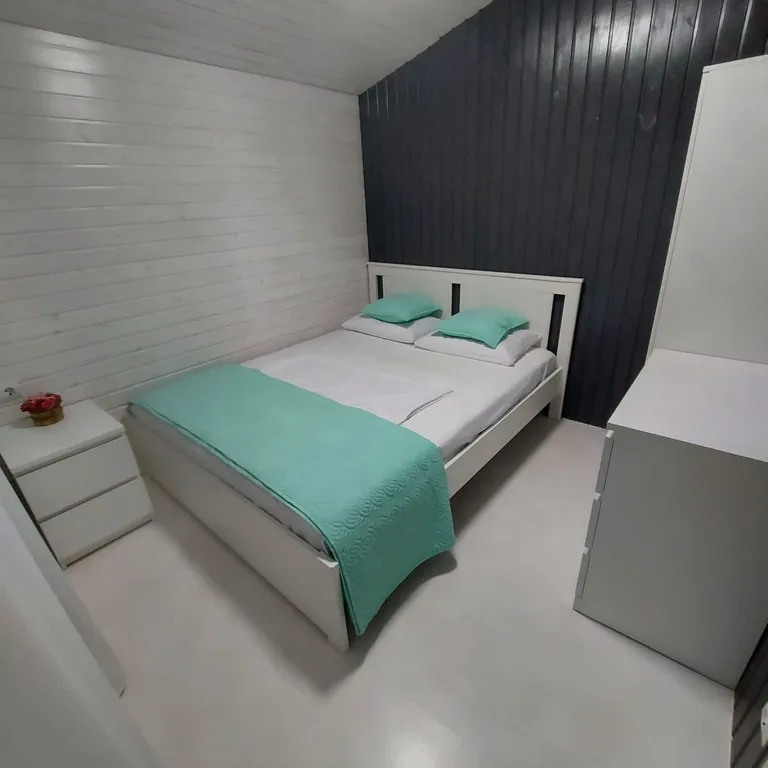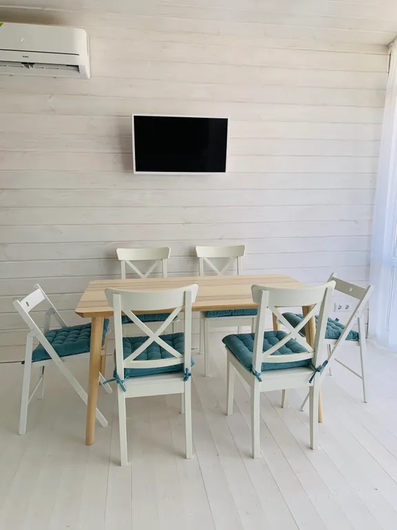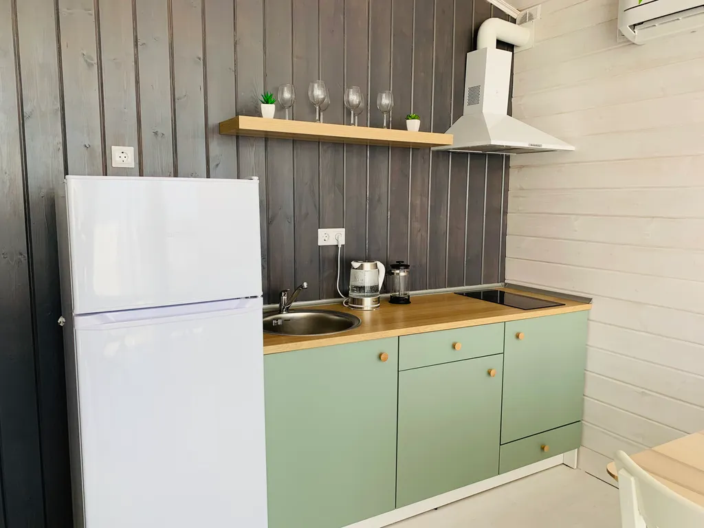 В доме две изолированные спальни, ванная комната, гостиная (кухня-столовая), а также терраса. Кухня-столовая оснащена всем необходимым инвентарем на 6 персон.
