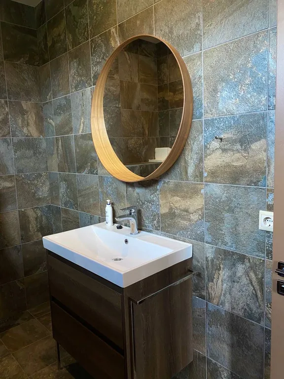 — современный санузел с душевой кабиной и инсталляцией;