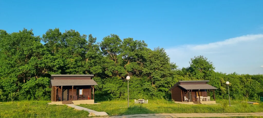 Предлагаем для вашего отдыха 5 эко-домиков, 2 больших домика до 7 гостей и 3 маленьких, до 3х гостей . Они размещены на большой территории с бассейном, спортивной площадкой, небольшим прудом и в уединении с природой. Так же на территории расположен банкетный зал на 50 персон , баня на дровах , банный чан и прокат мотоциклов эндуро.