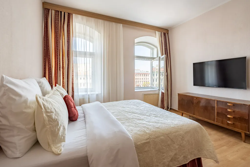 Апартаменты с 2 просторными спальнями и гостиной, отличный вариант для проживания компании друзей или семьи. Гарантирован отличный вид на набережную реки Фонтанки. Дом около Невского проспекта, рядом улица Рубинштейна и м. Достоевская. Незабываемые впечатления от вашего отдыха или деловой поездки.