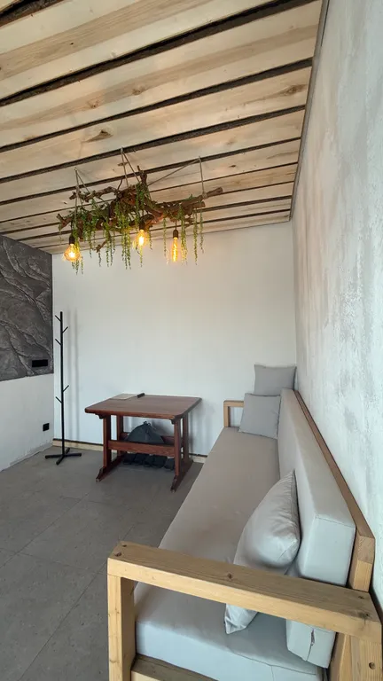 Большая гостиная, мебель ручной работы из массива дерева и вся необходимая техника.