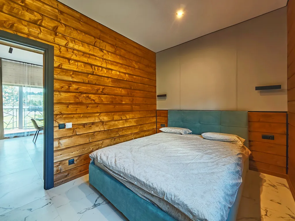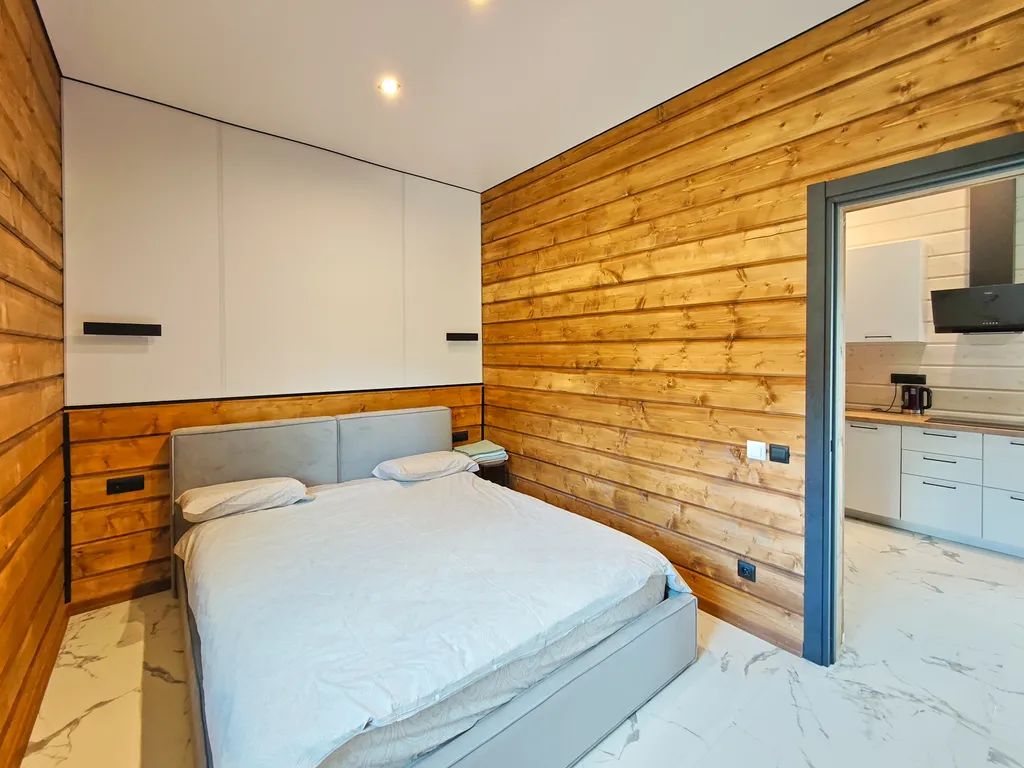Две отдельные спальни, каждая из которых оборудована роскошной двуспальной кроватью ascona с ортопедическим матрасом. Погрузитесь в мир сладких снов после насыщенного дня на природе! При необходимости мы с радостью предоставим вам дополнительное спальное место.