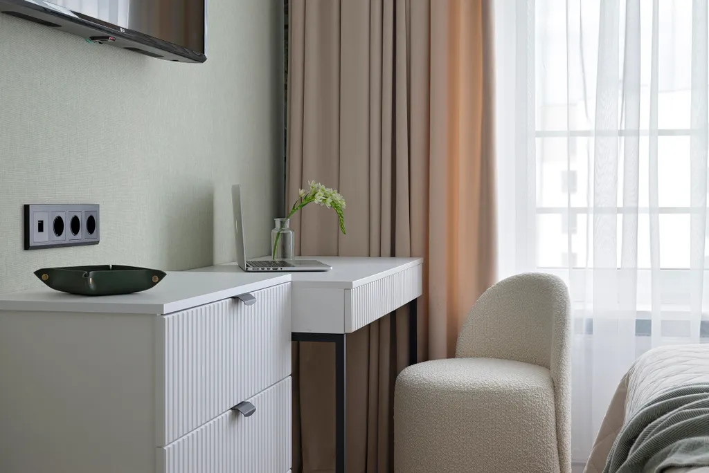 Внутри вас ждет современный интерьер с качественной отделкой. Из окон открывается вид во двор, обеспечивая тишину и спокойствие. В наличии кабельное/цифровое ТВ для вашего досуга.