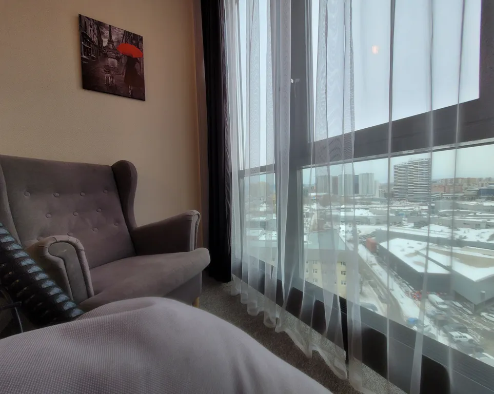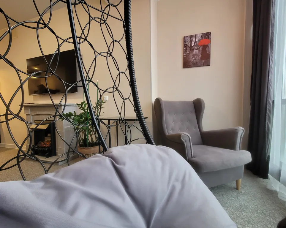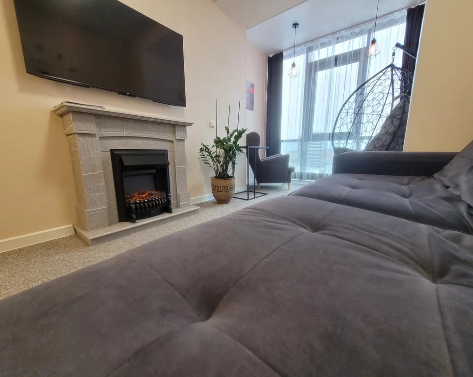 Уникальная квартира с фитобочкой на балконе, джакузи, камином и потрясающим видом на город — идеальное место для романтического побега, медового месяца или отдыха в стиле spa!