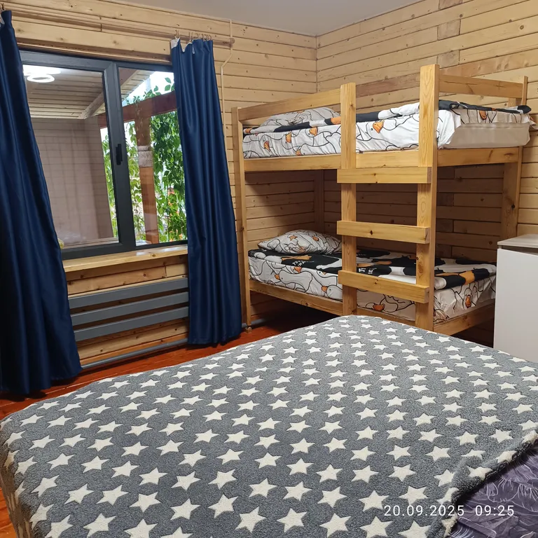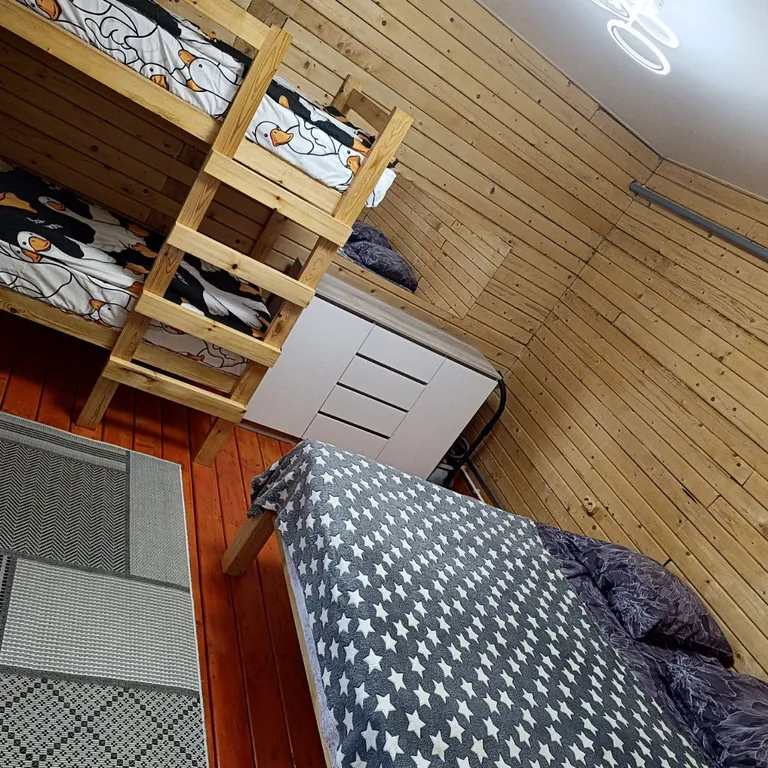 Дом рассчитан для комфортного проживания до 4 человек. Для семьи из 5 человек (2взрослых, 3 детей) возможно размещение третьего ребенка до 3 лет, без предоставления спального места.