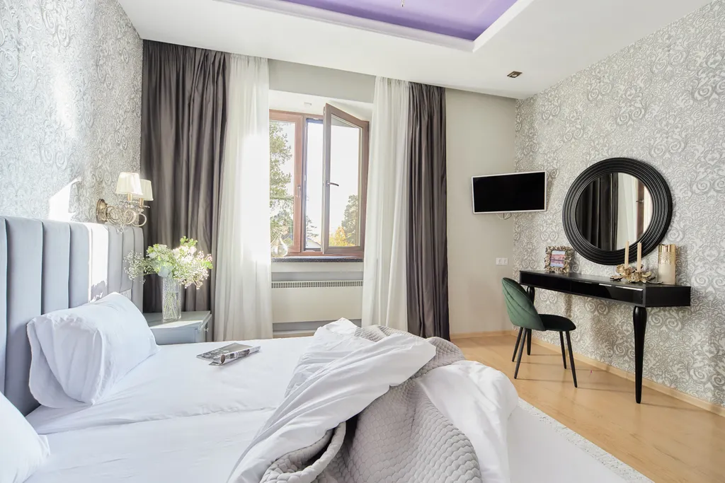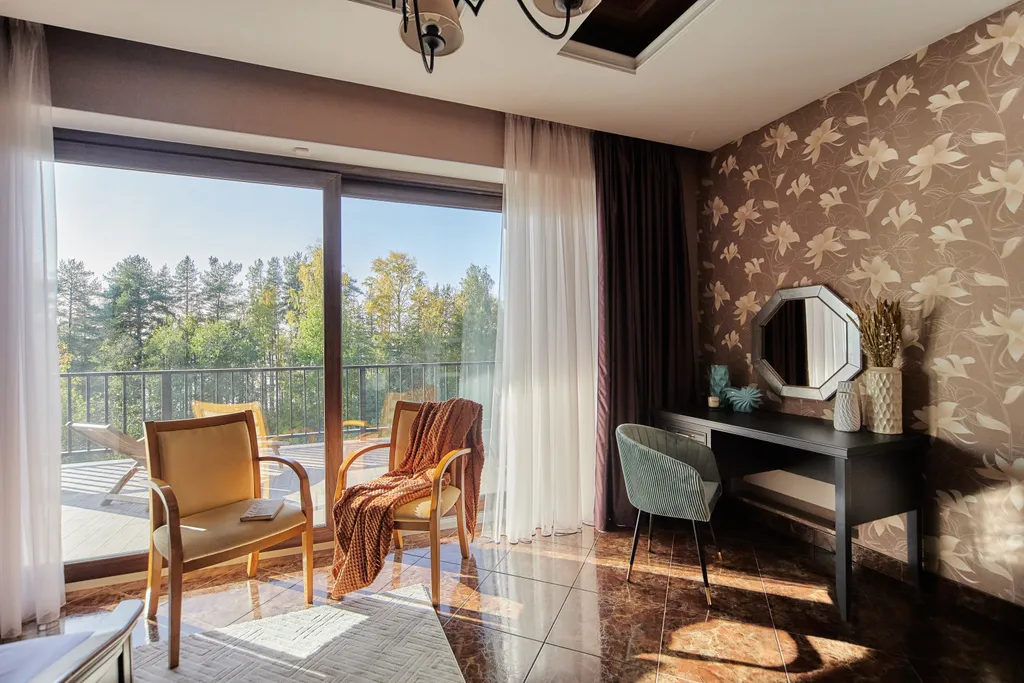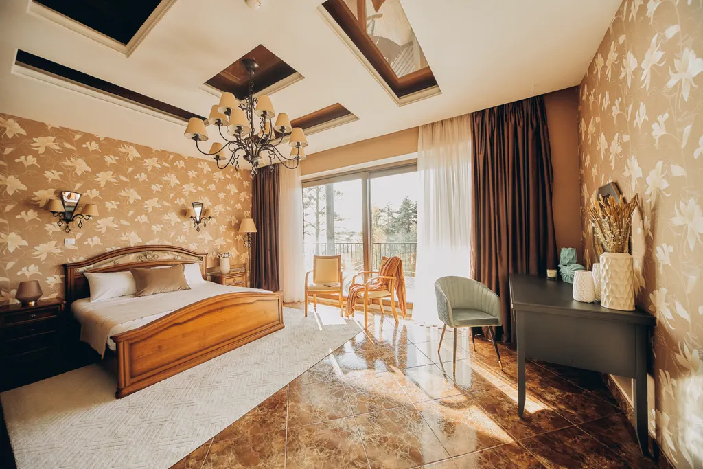 Две спальни с кроватями king-size и ортопедическими матрасами, каминами и выходом на террасу.