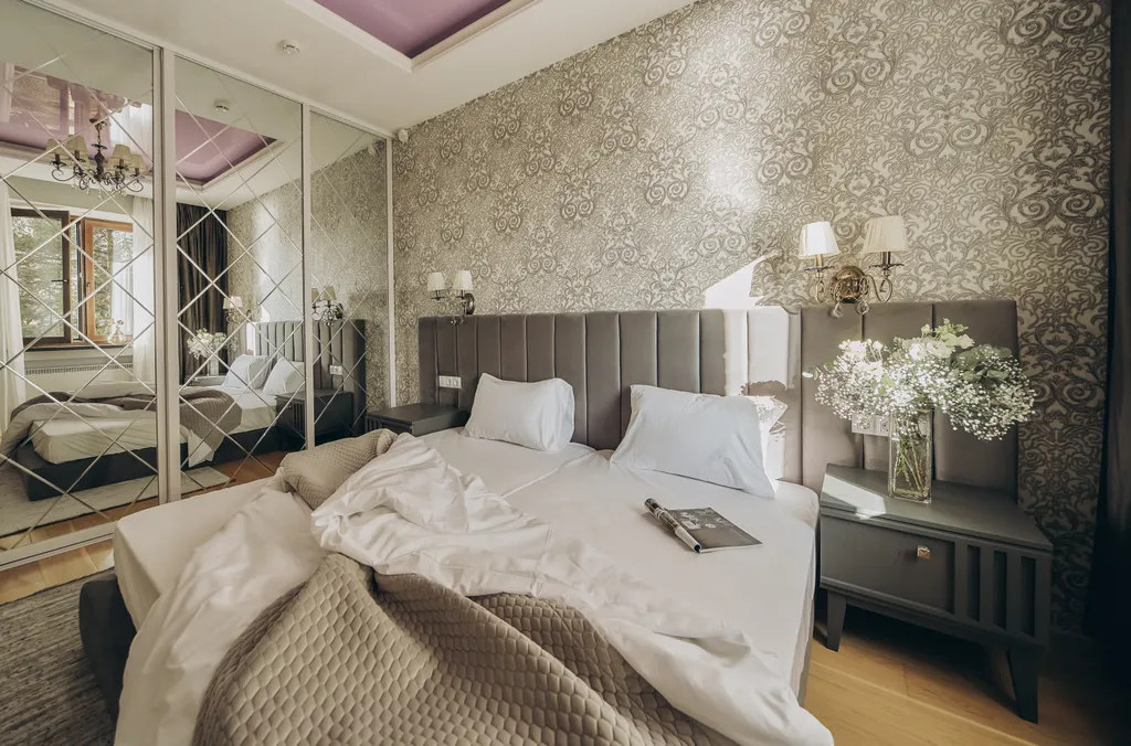 Уютная спальня на две персоны с раздельными кроватями.