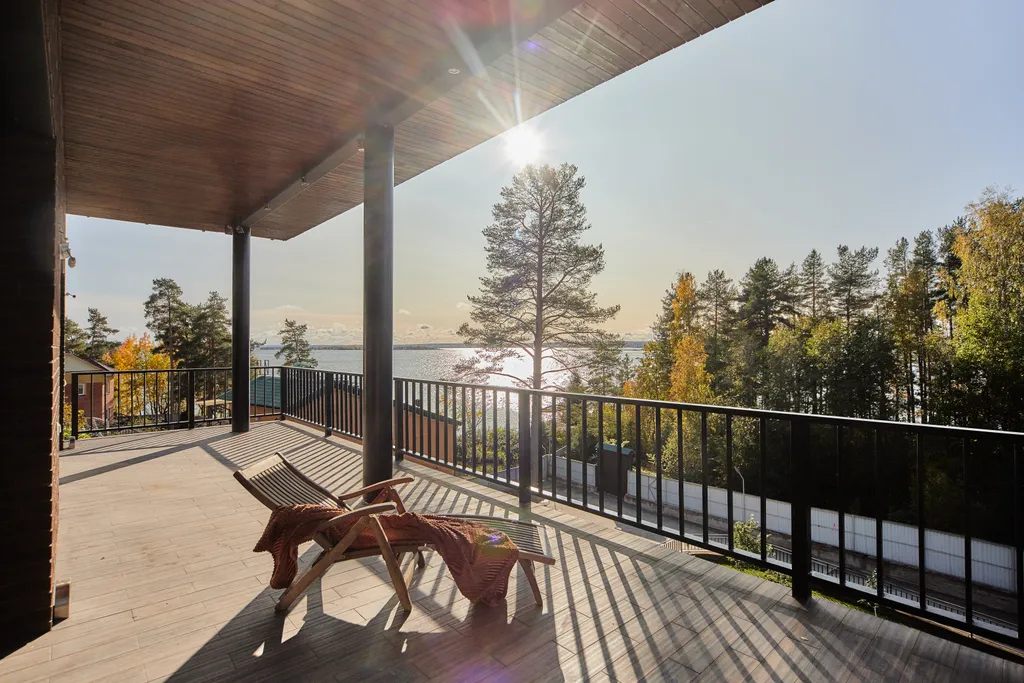 Эргономичная планировка позволяет совместить размеренный отдых и шумные развлечения. Панорамное остекление наполняет дом естественным светом и открывает виды на сад, лес и залив озера Укшозеро.