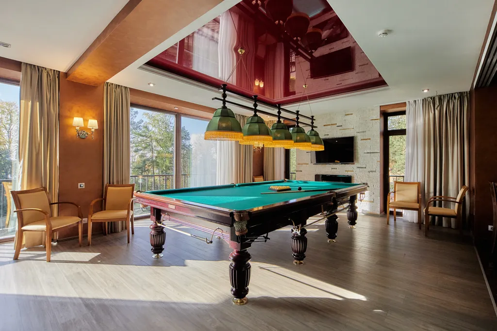 Бильярд с просторной зоной отдыха, баром и мини-кухней.