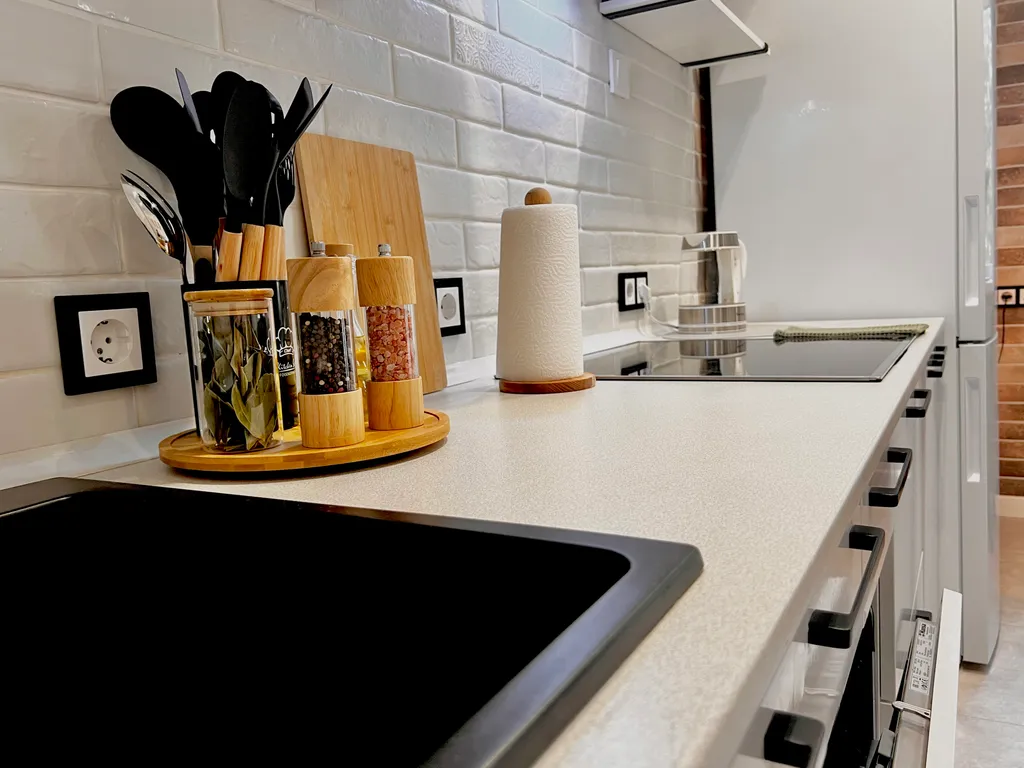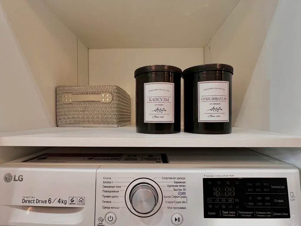 - Кондиционер; стиральная машина с системой сушки (капсулы), посудомоечная машина (таблетки), холодильник, чайник, микроволновая печь, индукционная плита, посуда для готовки и сервировки (кофе, чай), телевизор, утюг, фен, джакузи (полотенца — 6 шт., одноразовые щетка с пастой, шампунь, гель для душа и другие туалетные принадлежности);