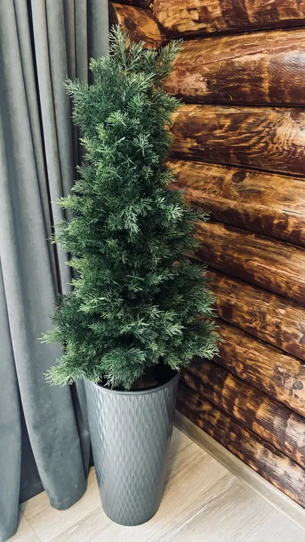 В спальной зоне - двуспальная кровать, прикроватная мебель, светильники. У коттеджа своя патио-зона с кушеткам, столом, мангалом. Гостям предоставляются постельное бельё, полотенца, туалетные и косметические принадлежности, халаты, тапочки, комплиментарный карельский чай при заезде. Ориентирован на семейный отдых и романтическое удлинение.