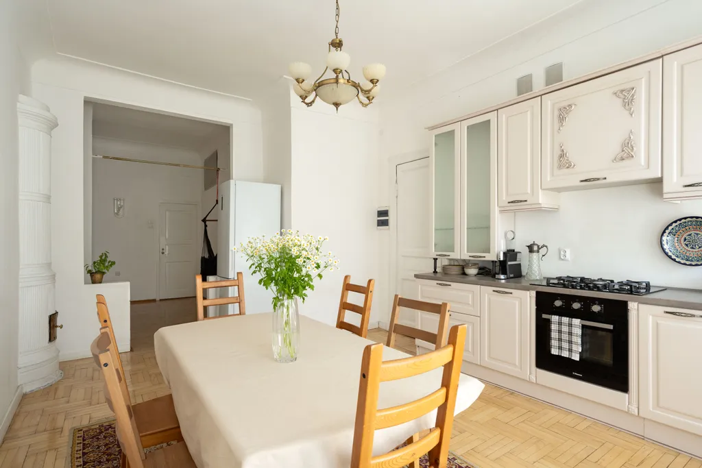 В вашем распоряжении большая кухня-гостиная, зал с действующим камином и наборным паркетом, три отдельные спальные комнаты, два независимых санузла, в одном из которых сауна.