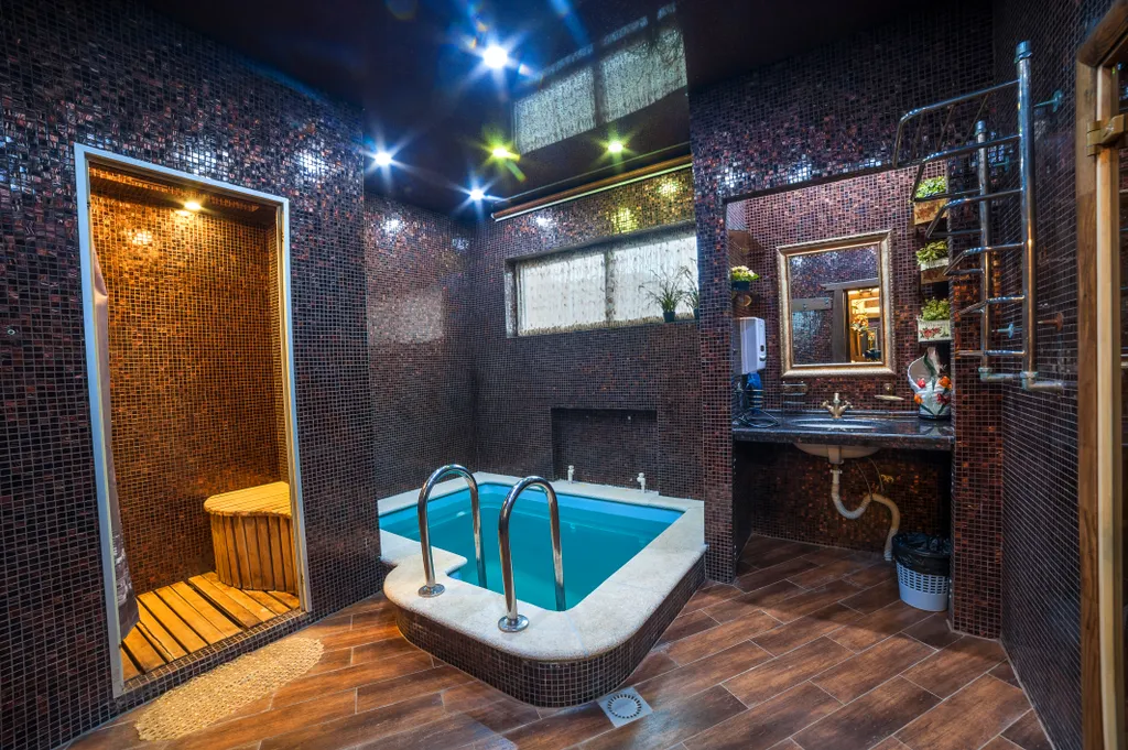 Купель для контраста размером 2/2м находится возле парной.