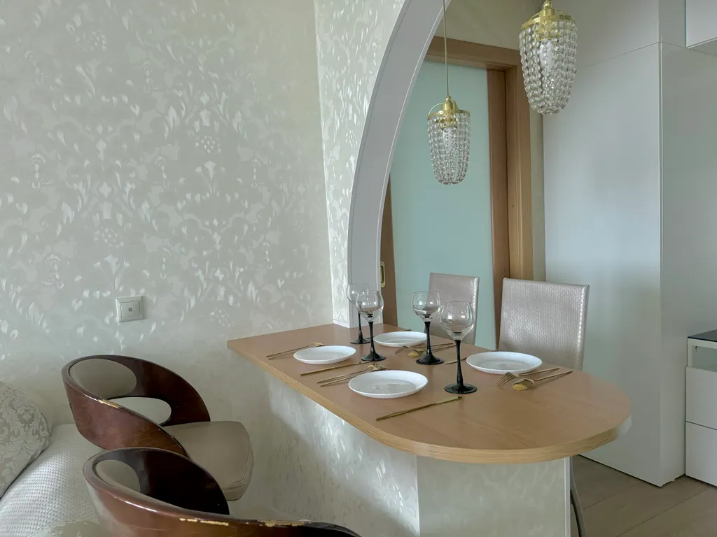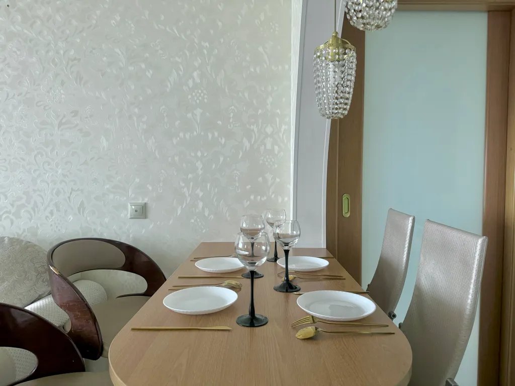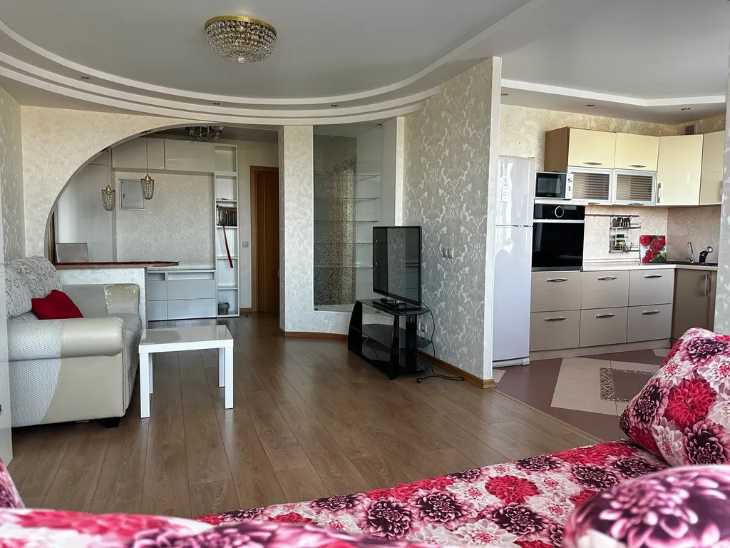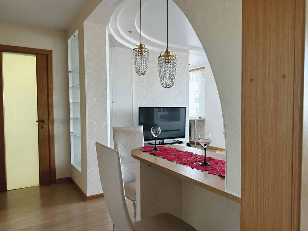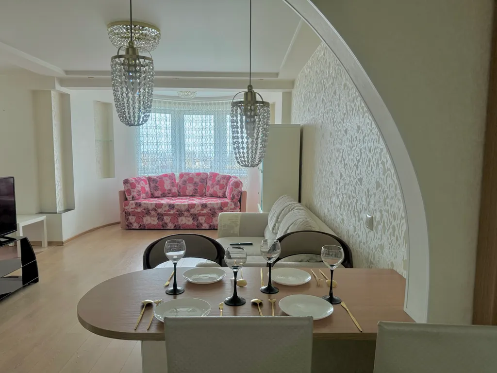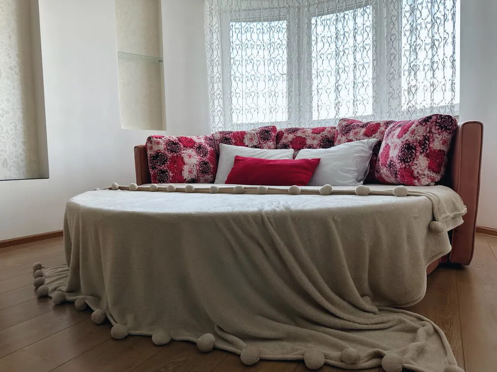 В квартире есть двуспальная кровать и два дивана-кровати. Возможно размещение до 6 человек, двое из которых ростом до 140 см. Предоставляется чистое постельное бельё и полотенца, средства гигиены. Есть посуда для приготовления и приёма пищи.