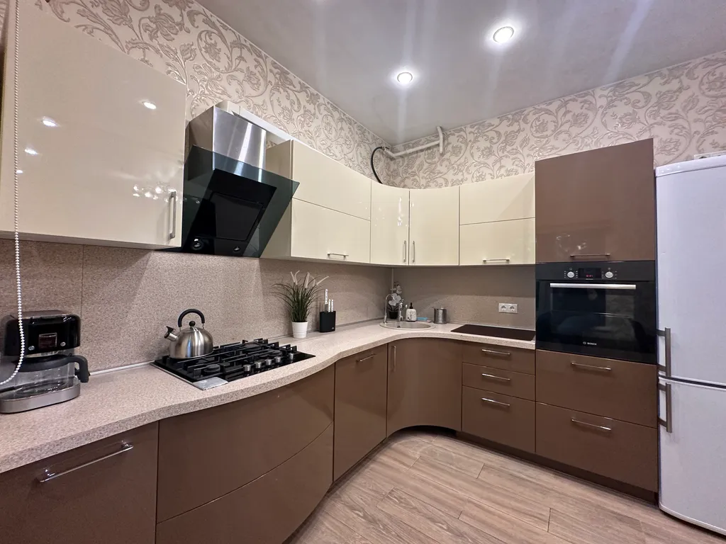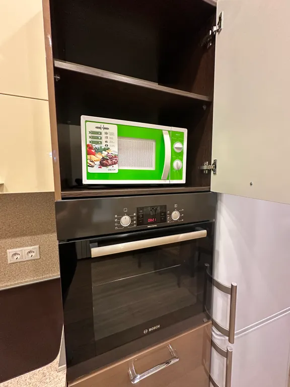 — холодильник с морозильной камерой, газовая 4-комфорочная плита, посудомойка, электрочайник, микроволновка, духовой шкаф