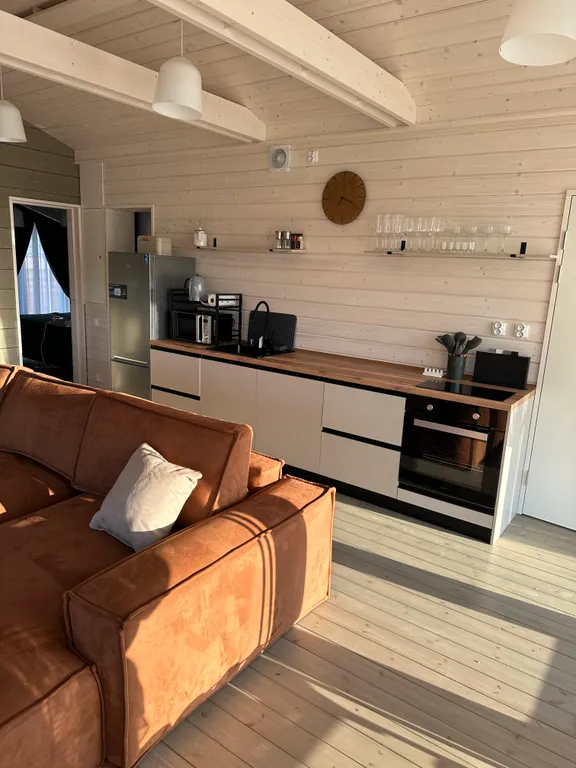 - Дом подходит для отдыха круглый год: электрические конвекторы, кондиционер, камин