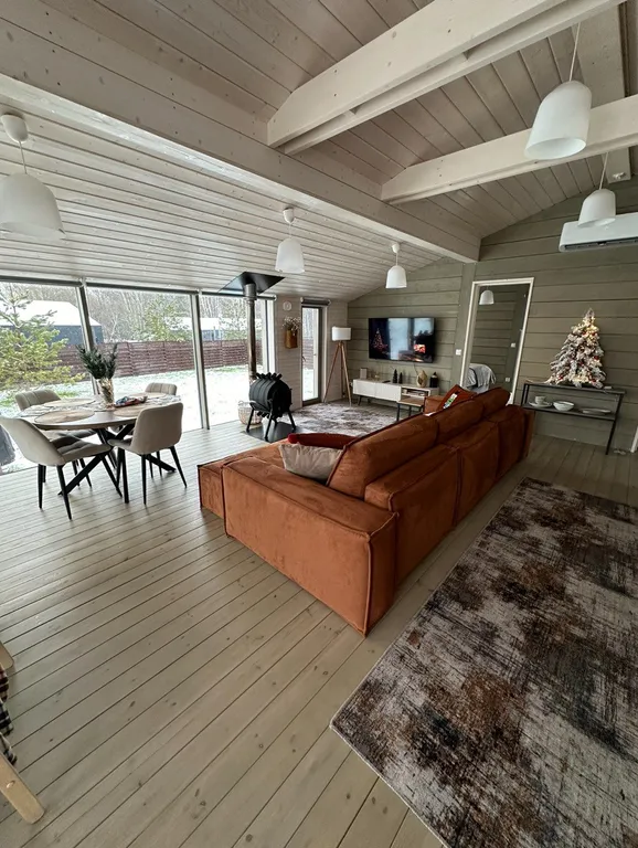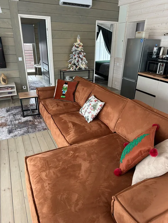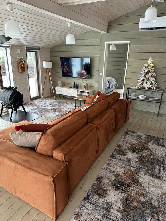 - Просторная гостиная с камином и диваном (доп. спальные места)