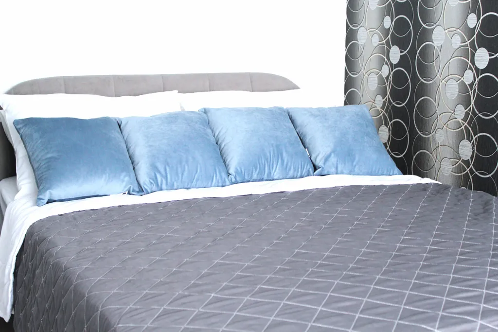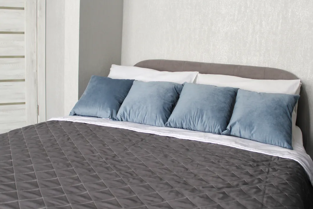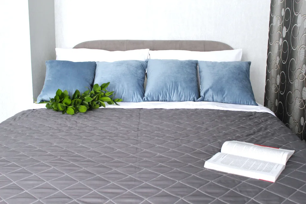 двуспальная кровать с ортопедическим матрасом (140×200), комплект постельного белья и полотенца