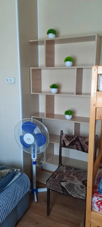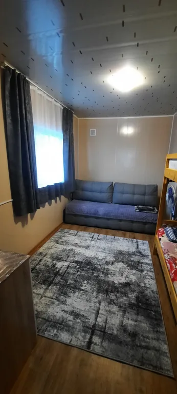 В домике кровать двухъярусная, раскладной большой диван, телевизор, вентилятор, утюг, кондиционер. Выдается постельное бельё.