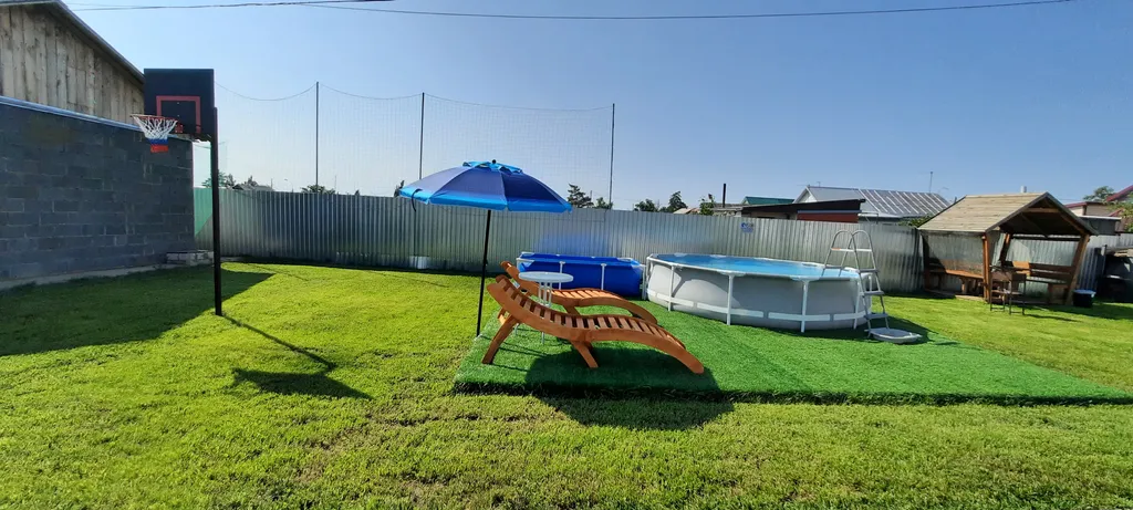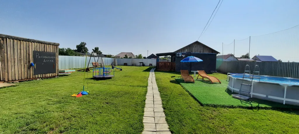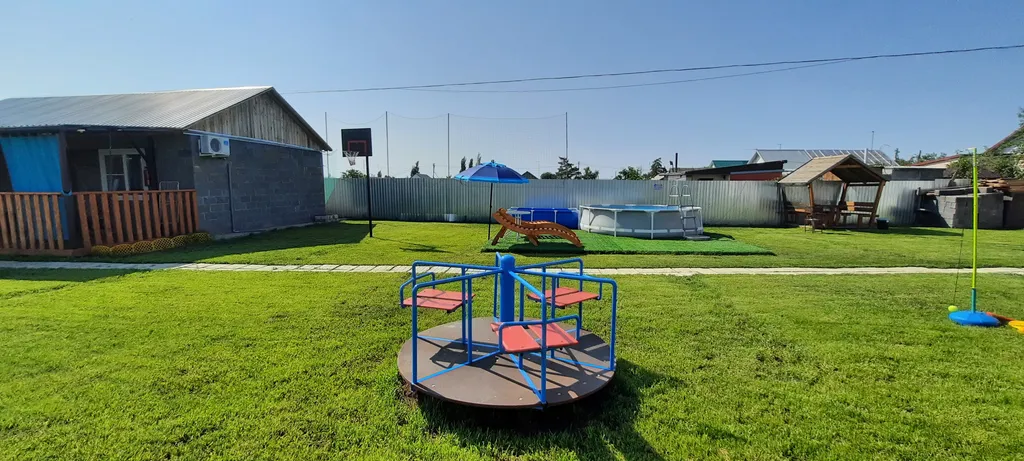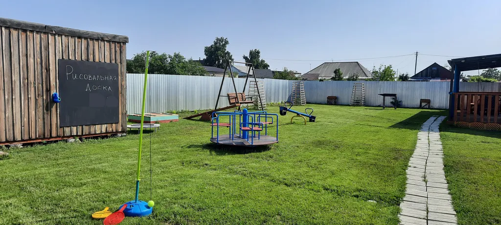 Две детских площадки общие. Есть печь и казан. Территория ночью освещается светодиодными гирляндами.