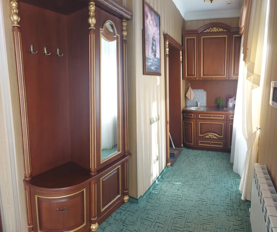 Вся мебель выполнена из натурального дерева.