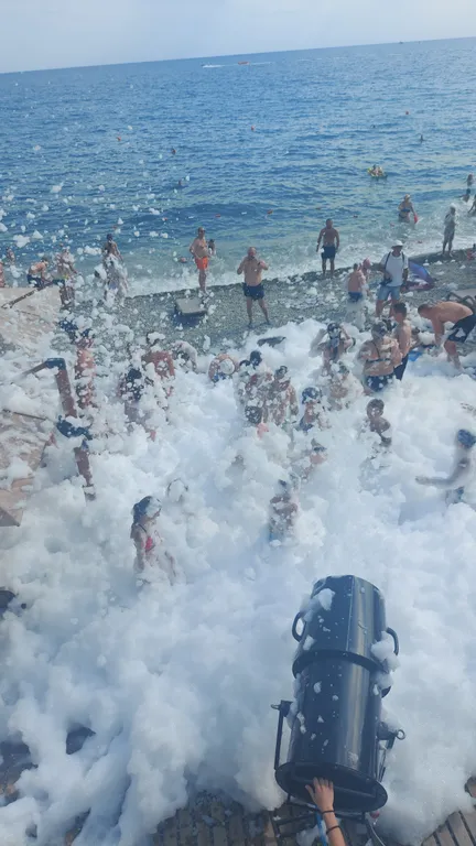 В пешей доступности пляжи «Ялта-Интурист» и новые, комфортные и современные пляжи «Скай Бич» и «Изумрудный». На пляжах кафе, водные аттракционы, шезлонги и бунгало. Проводятся днём пенные дискотеки для детей и ночные для взрослых. На машине до пляжей 3–5 мин по дороге без пробок. У моря есть платная автостоянка.
