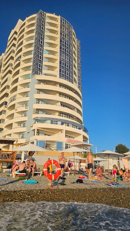 Выходя за ворота комплекса, вы попадете на один из лучших пляжей. Мелкая галька, удобный вход в море, широкая береговая линия, полностью благоустроен и малолюдный.