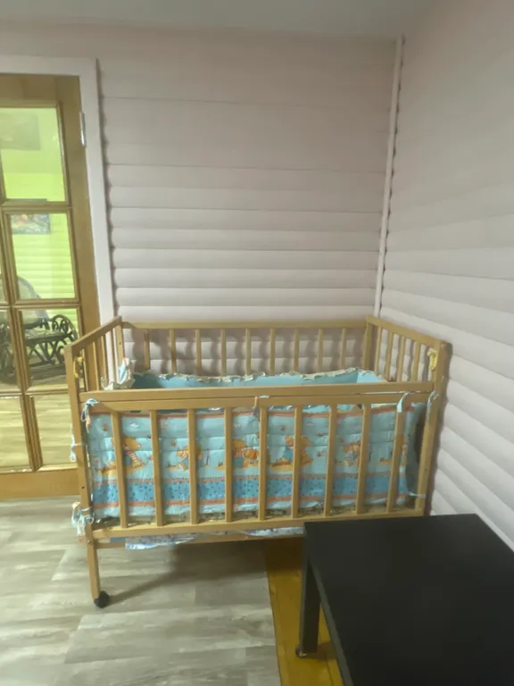 Для самых маленьких гостей есть детская деревянная кроватка с высокими бортиками (мягкие бортики, подушка, одеяла, постельное белье), стульчик для кормления мягкий складной, ходунки, накладка на унитаз детская.