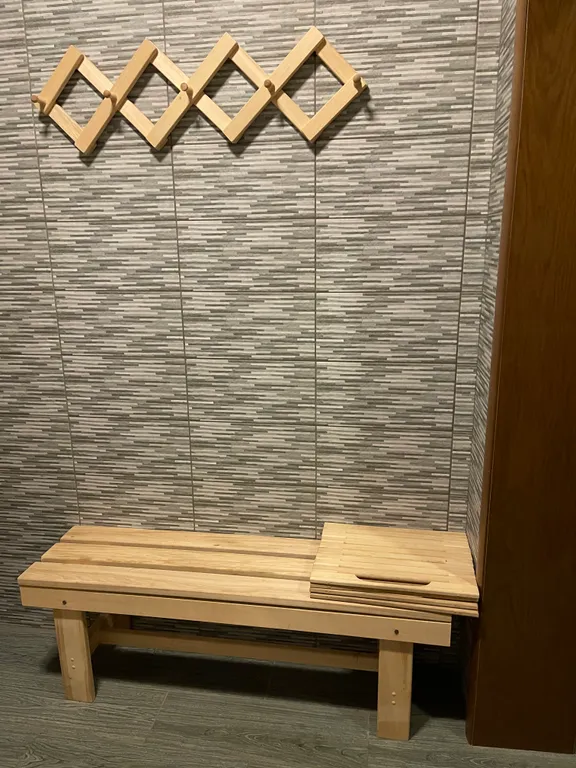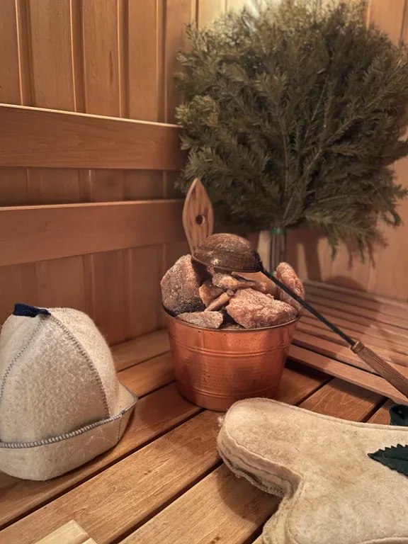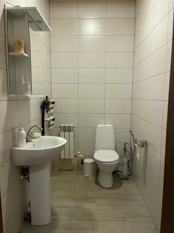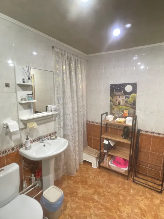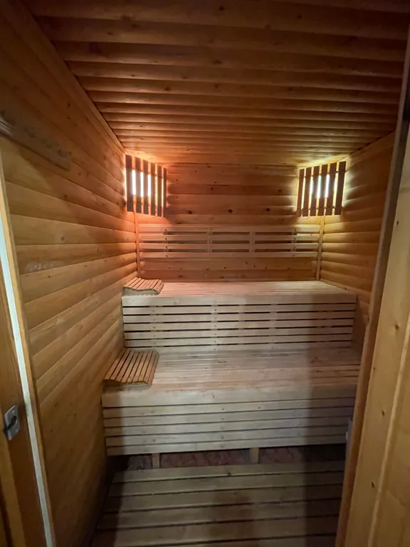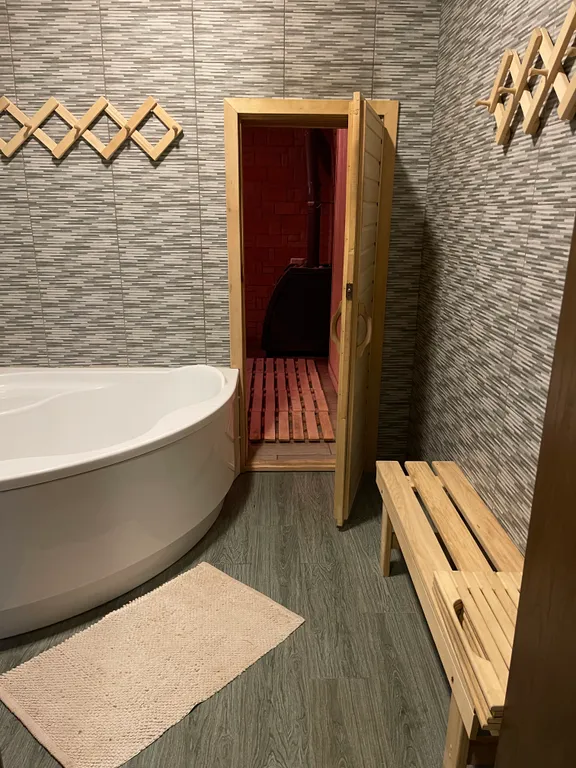 Туалетная комната :здесь расположена душевая кабина, туалет, деревянная электрическая сауна (использование по договоренности), предметы для уборки и личной гигиены, есть фен, утюг, гладильная доска.