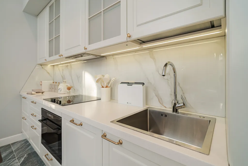-Полностью оборудованная кухня с посудомоечной машиной, кофемашиной и фильтром для чистой воды — готовьте с удовольствием!
