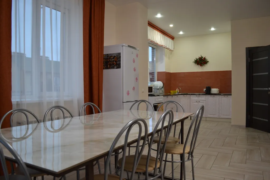 - Огромная гостиная с большим столом на 12 человек;
