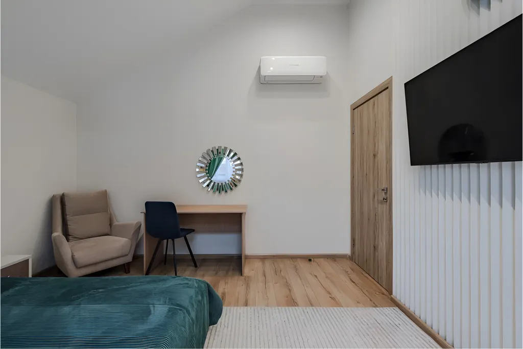 В каждой спальне сплит системы, телевизоры.