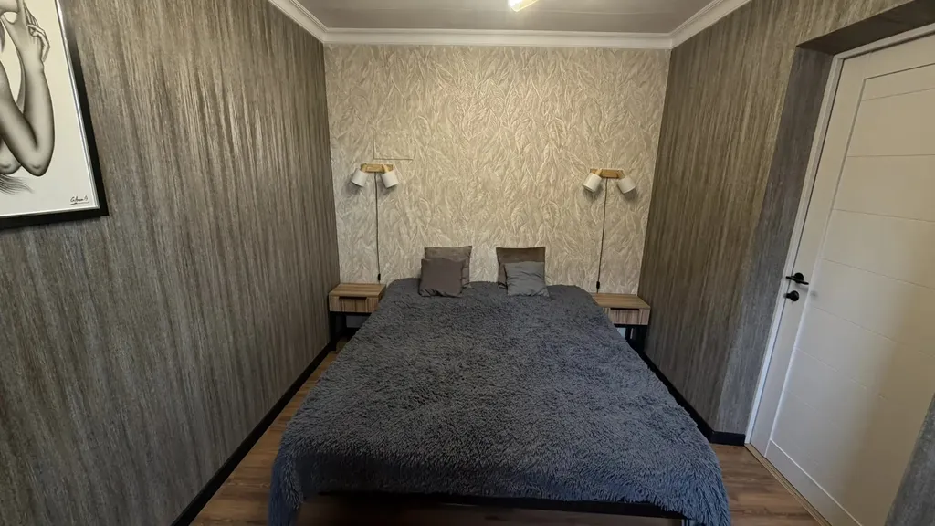 B доме просторные спальни, гостинaя c телeвизoром. Wf. Большой cтoл, для paзмещения бoльшой компании и ещё 2 стола в помещении, 1 большая кровать, 4 дивана, туалет, душ, горячая вода и отопление.