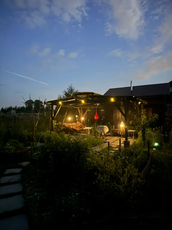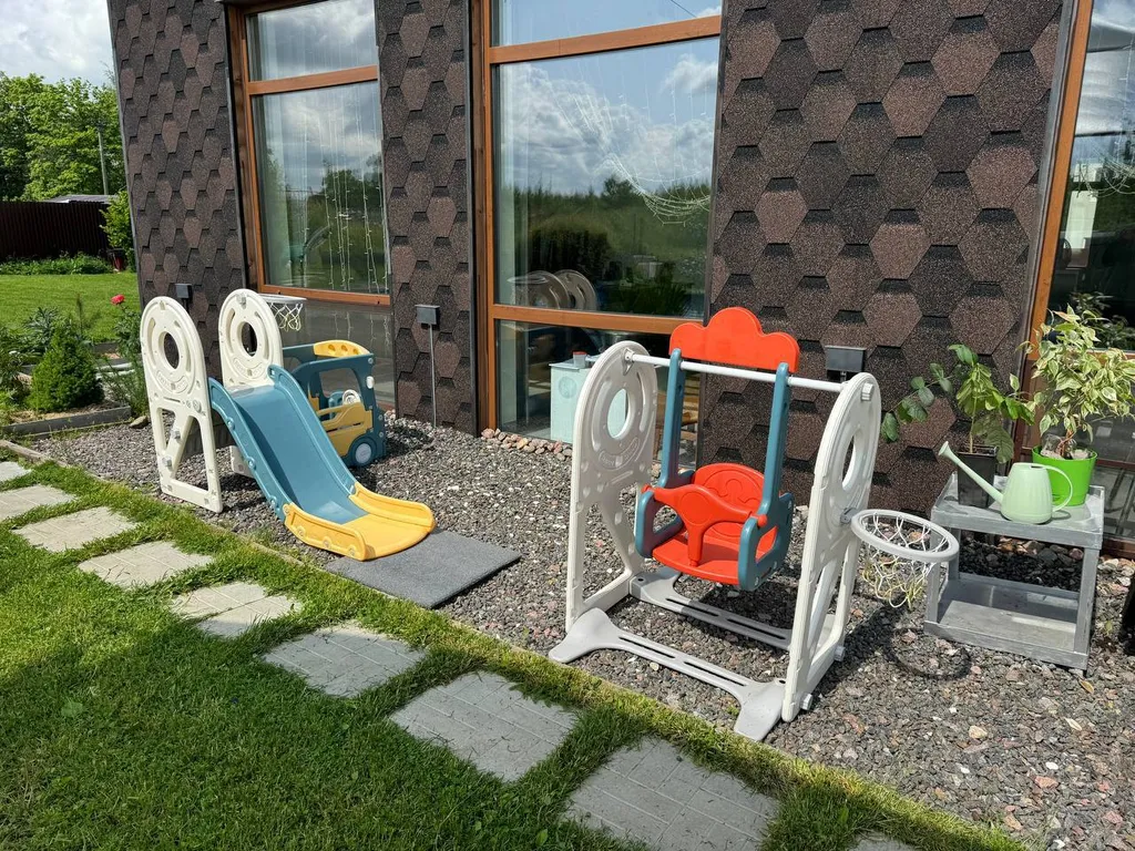 На территории расположен открытый бассейн, пергола с качелями и гамаком, костровая чаша, а также мангальная зона. Отдельная опция посещение бани в хозяйском доме и банного чана на улице.