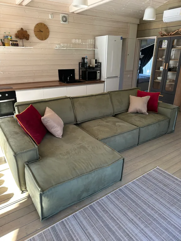 - Просторная гостиная с камином и диваном (доп. спальные места)