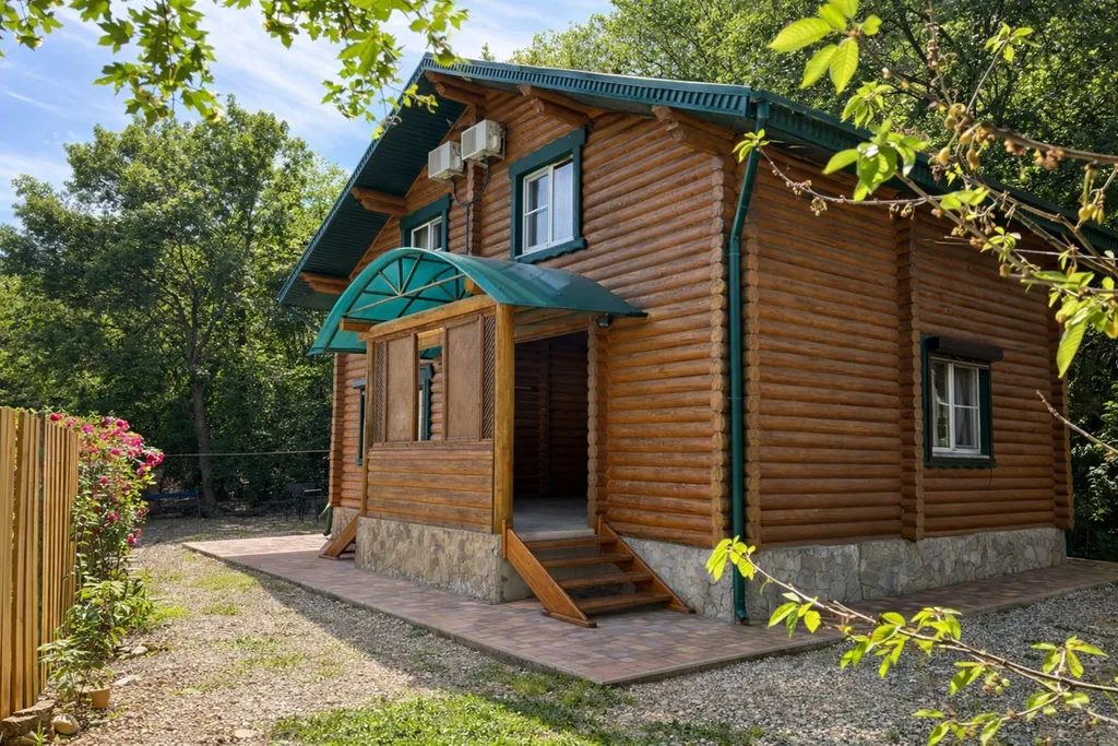 Коттедж находится вдали от других домов. С одной стороны его окружает река, а с другой — горный лес.