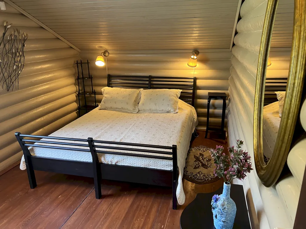 на второй этаж ведет винтовая лестница, если у вас небольшие дети – они смогут ночевать на 1-м этаже в гостиной.