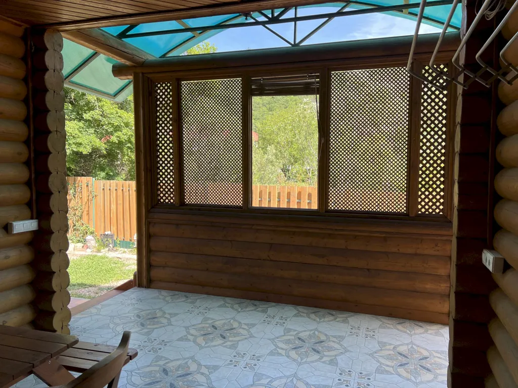 Дом расположен в заповедной природной зоне. Он построен из натурального бревна: ангарской сосны и лиственницы. Бревно обработано экологически безопасными составами.