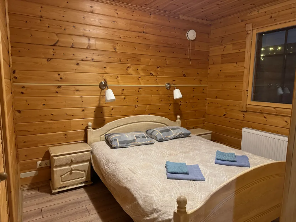 3 спальни (до 6 гостей): на 1 этаже две комнаты с двуспальными кроватями, на 2 этаже одна комната с двумя односпальными кроватями (по запросу предоставляем детскую кроватку, стульчик, горшок).