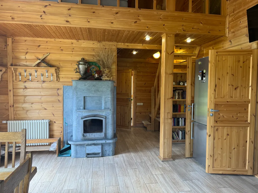 Финский камин (тепло в доме также поддерживает центральная котельная и идет на отопление батарей в комнатах и пола в кухне-гостиной).